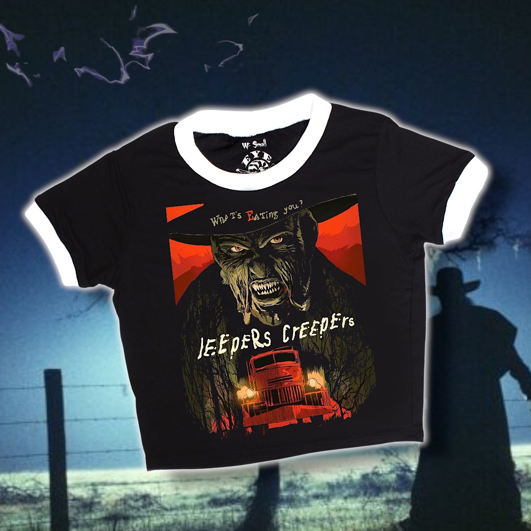 Jeepers Creepers Ringer Tee (Limited Edition) (Women) 100% supersoft ringspun cotton + discharge printing. Basically, your shirt will look and feel AWESOME! So soft and lightweight. Manufactured and printed in...