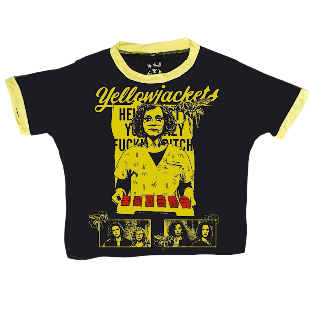 Yellowjackets Ringer Tee (Women) 100% supersoft ringspun cotton + discharge printing. Basically, your shirt will look and feel AWESOME! So soft and lightweight. Manufactured and printed in the USA. Sizes S...