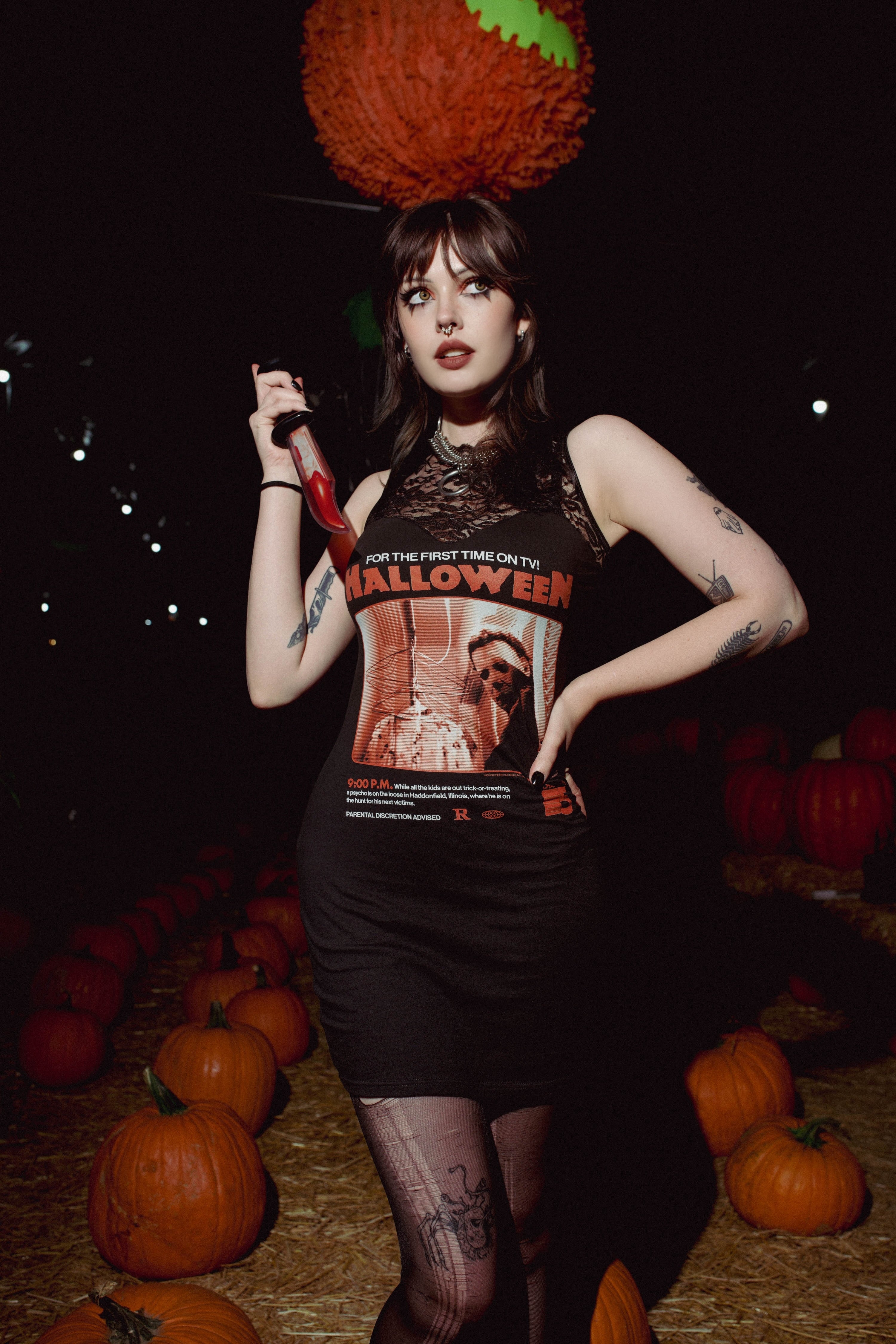 Terrifier X Fangoria Magazine Cover Lace Strap Dress! Altered from a large licensed men's t-shirt. Black lace V-cut neckline with black adjustable straps. Sizes // Measurements: XS: bust...