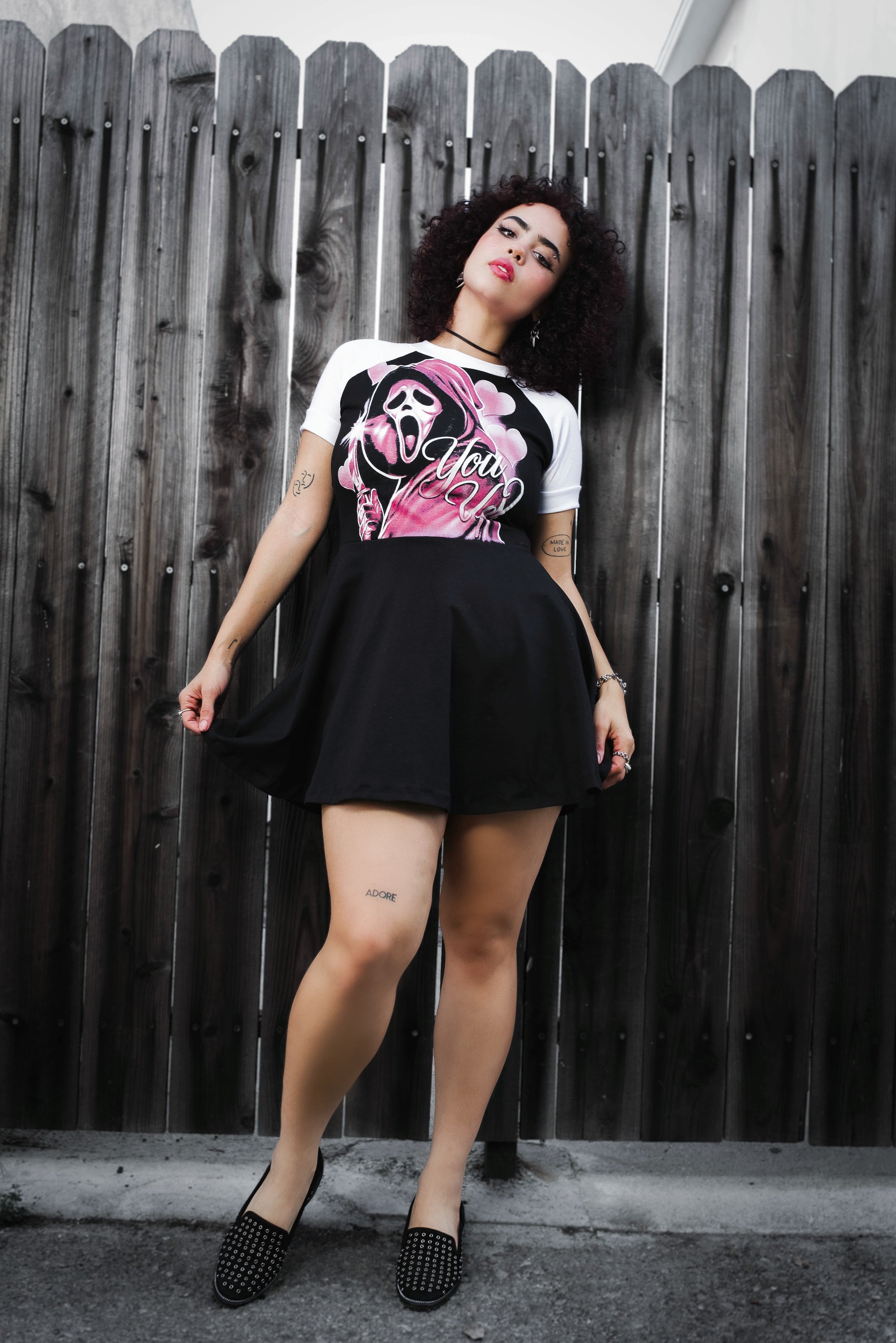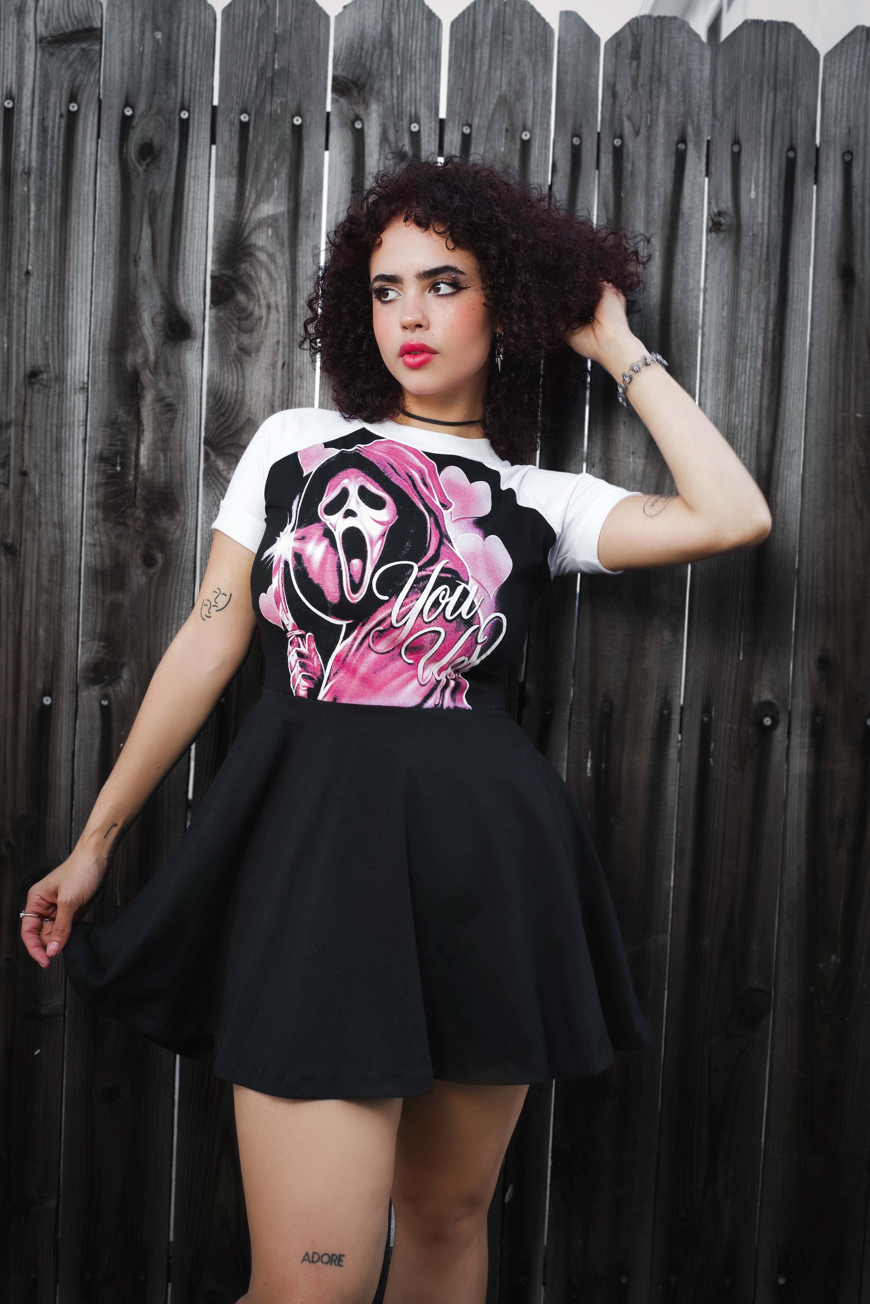 Ghostface Baby Doll Dress! Professionally sewn. Altered from a large licensed men's t-shirt. Super soft cotton. Short baseball-style sleeves. Round neckline. Hits above the knee.Sizes // Measurements: XS: bust 30...