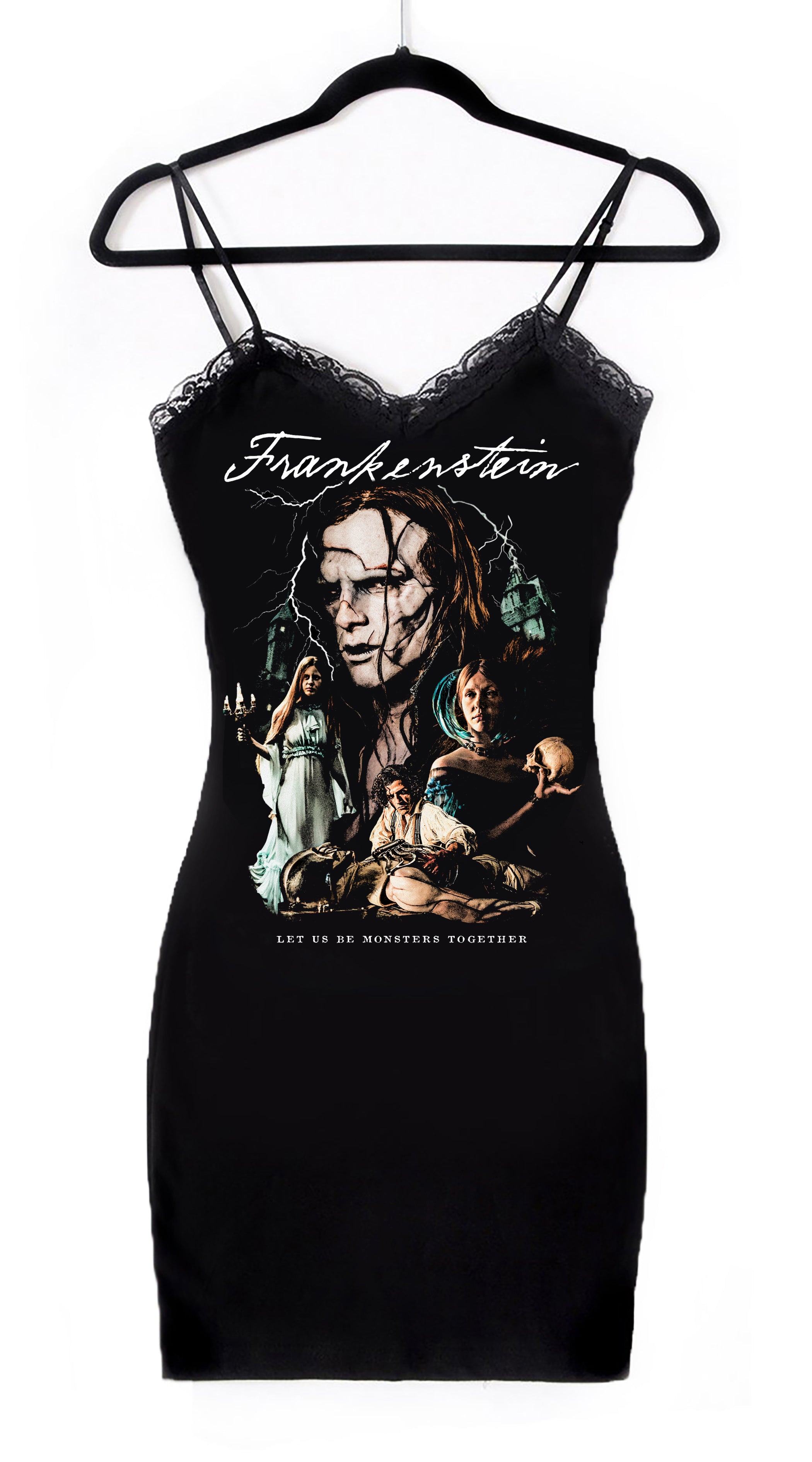 The Silence of The Lambs Lace Strap Dress! Altered from a large licensed men's t-shirt. Professionally finished with serged seams. Lace V-cut neckline and straps. Sizes // Measurements: X small: bust 30...