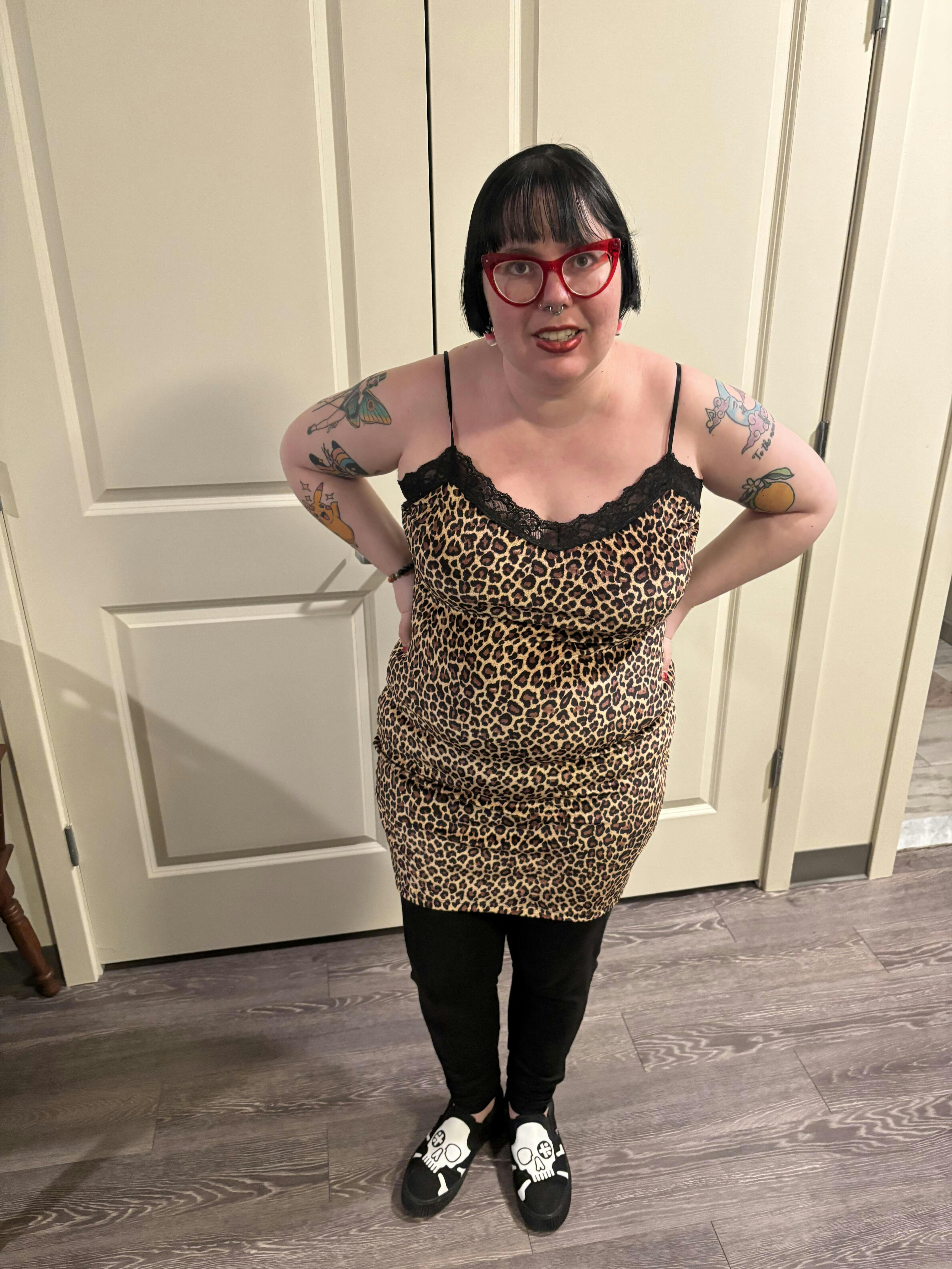Leopard Velvet Lace Strap Dress! Black lace V-cut neckline and adjustable straps.