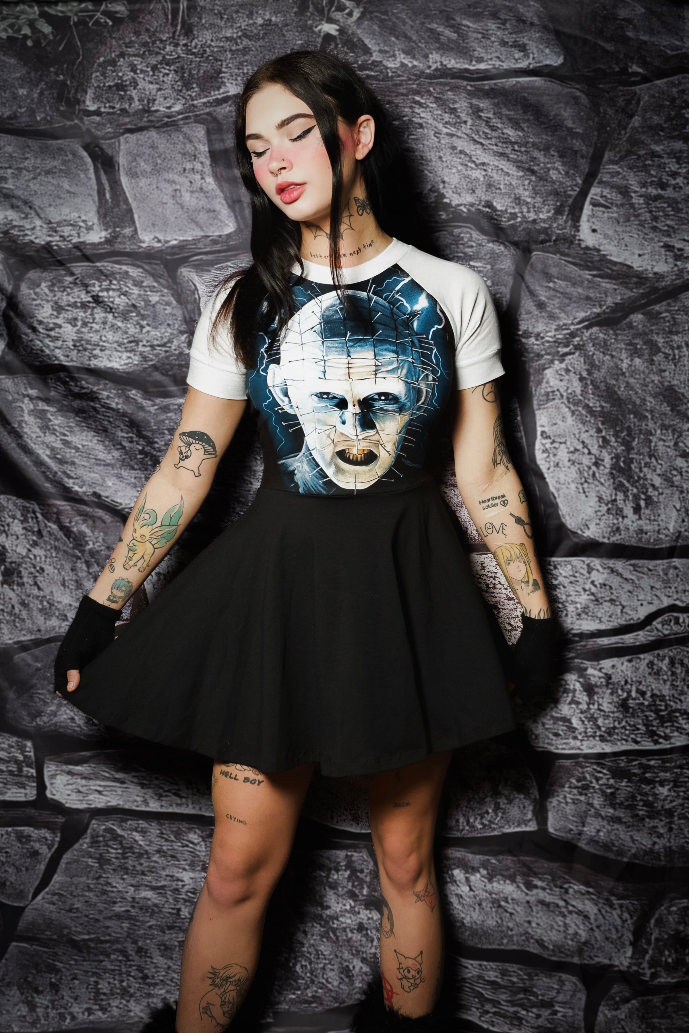 Pinhead Baby Doll Dress! Professionally sewn. Altered from a large men's t-shirt. Super soft cotton. Short baseball-style sleeves. Round neckline. Hits above the knee.Sizes // Measurements: