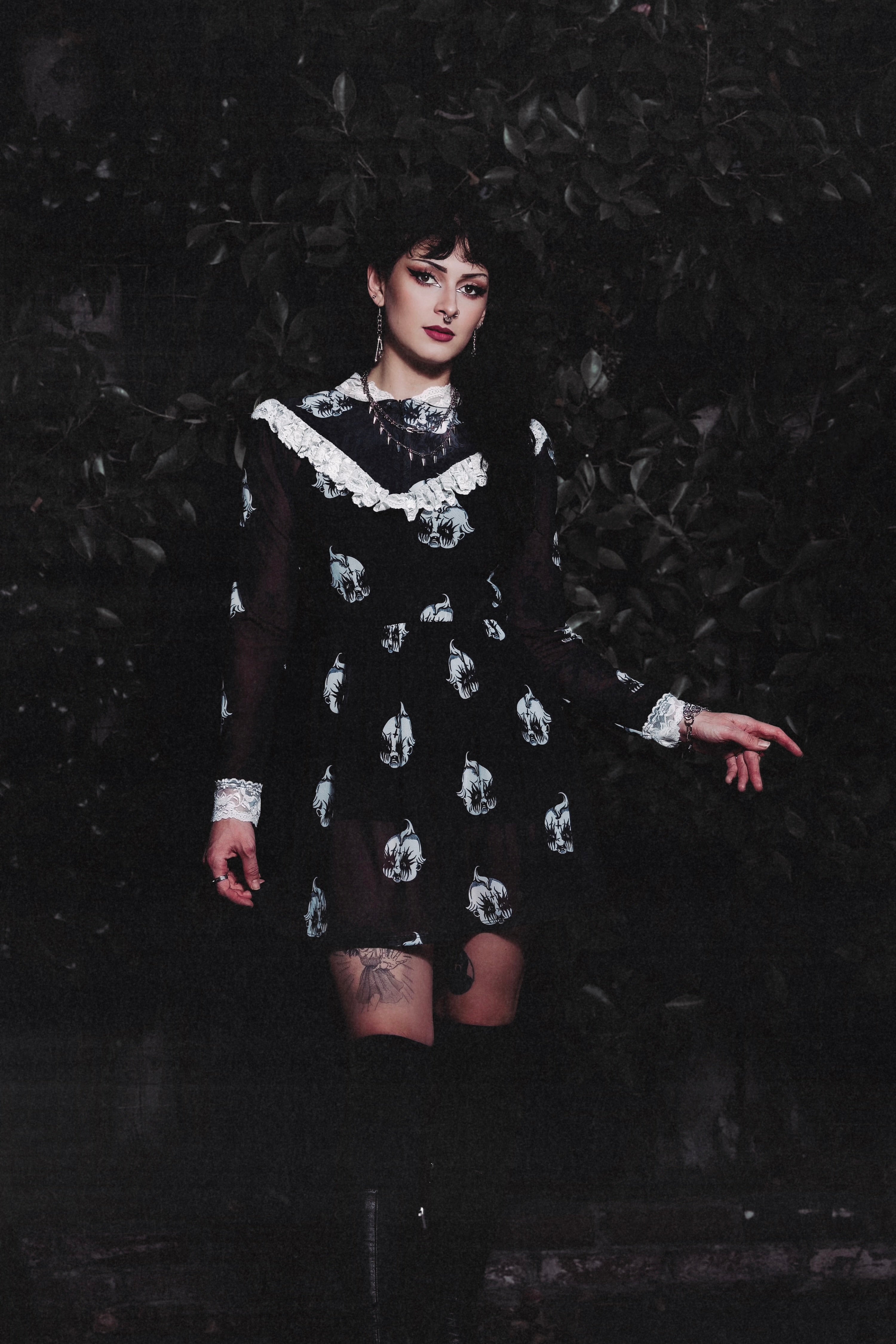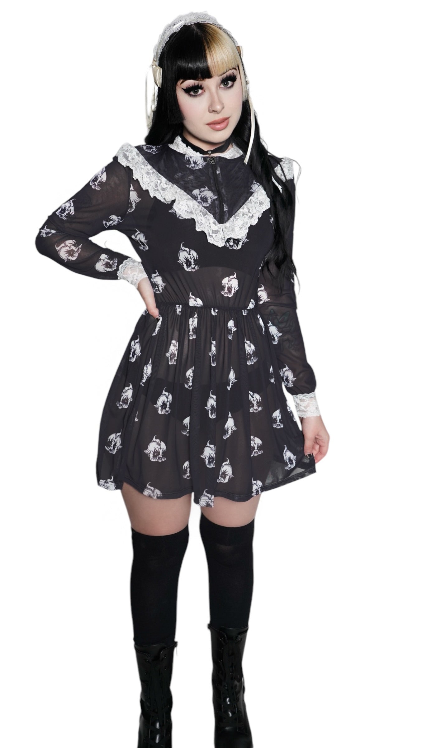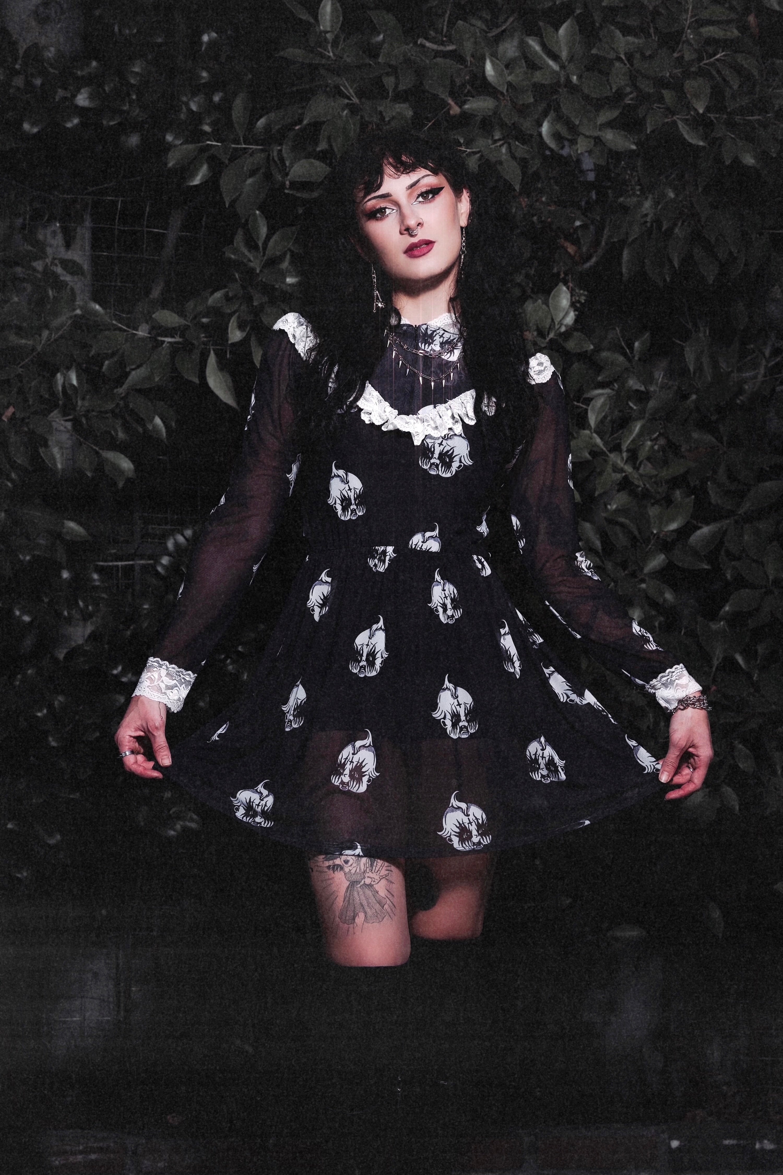 This Stunning Victorian Dress is professionally made with high neck closure with zipper. Super soft stretchy mesh and lace. Artwork by @el_gato_del_diablo- Designed and made by our family in Los Angeles. We...