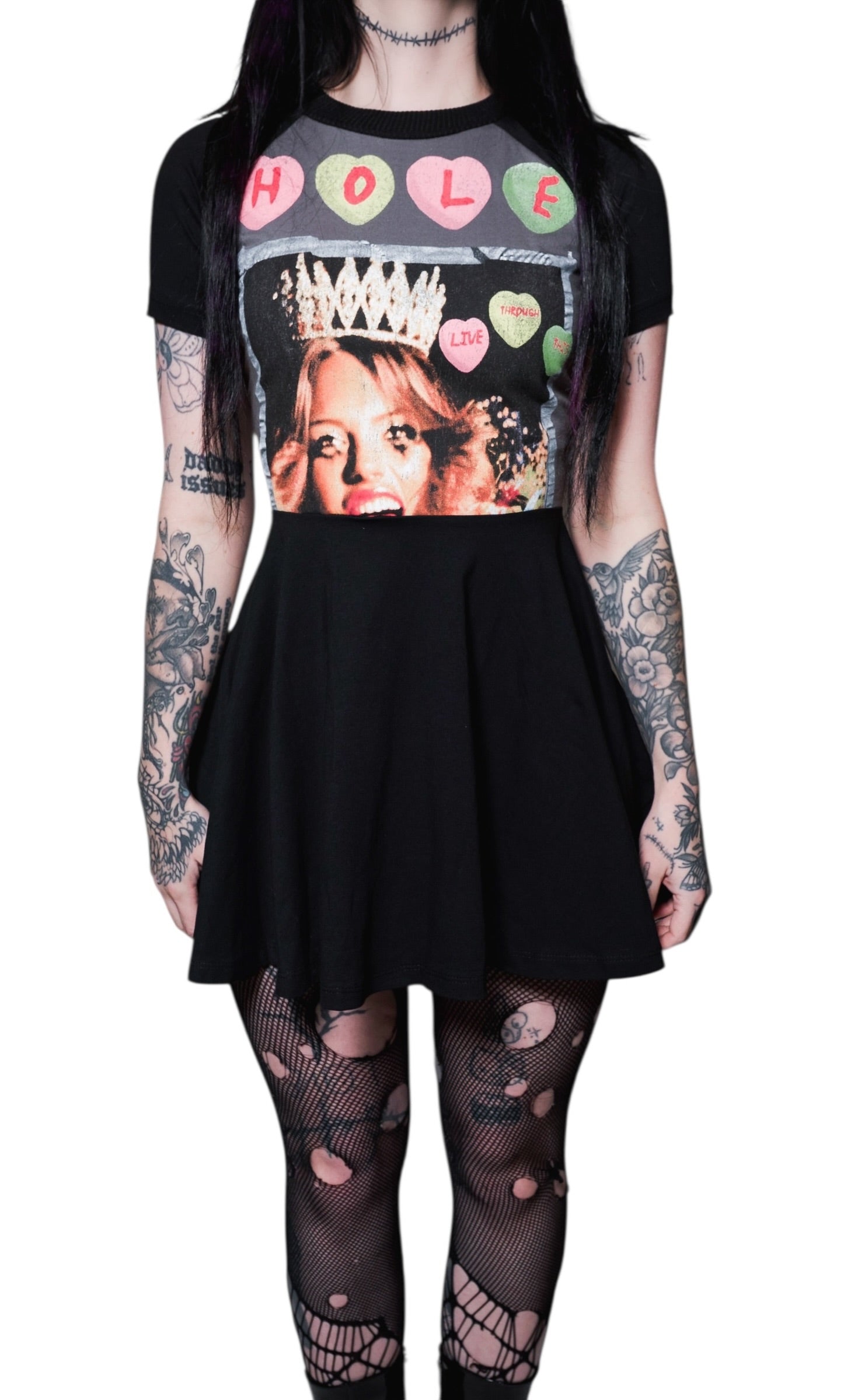 Hole Baby Doll Dress! Professionally sewn. Altered from a large licensed men's t-shirt. Super soft cotton. Short baseball-style sleeves. Round neckline. Hits above the knee.Sizes // Measurements: XS: bust...