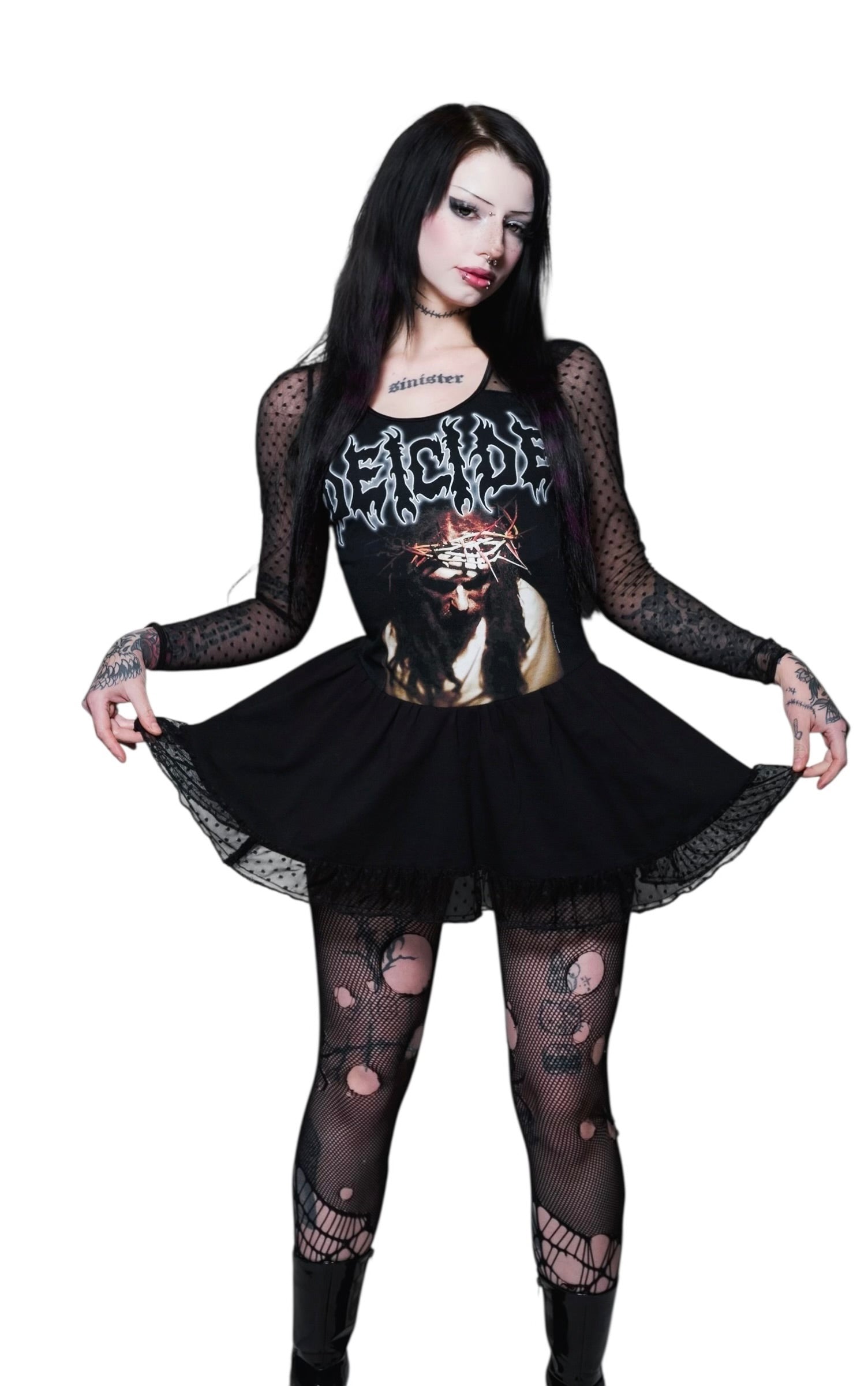 Deicide Ballerina Dress! Altered from a large licensed men's tee. Professionally sewn with the most divine details! Sizes // Measurements: XS: bust 30 - waist 24 - hips 34 Small: bust 34 -...