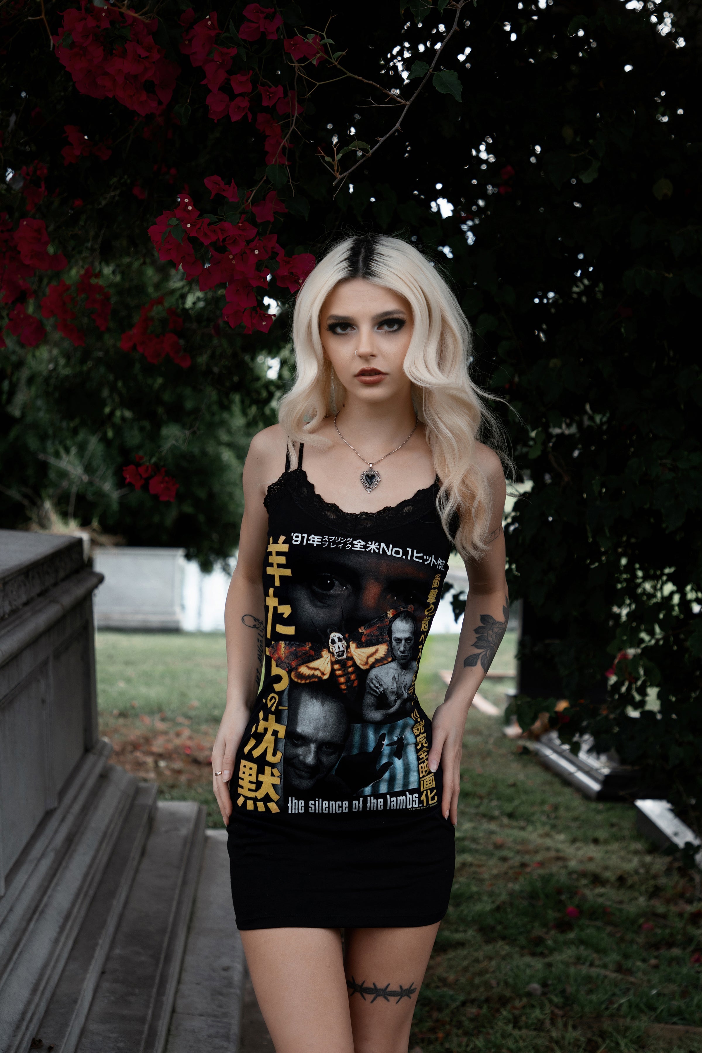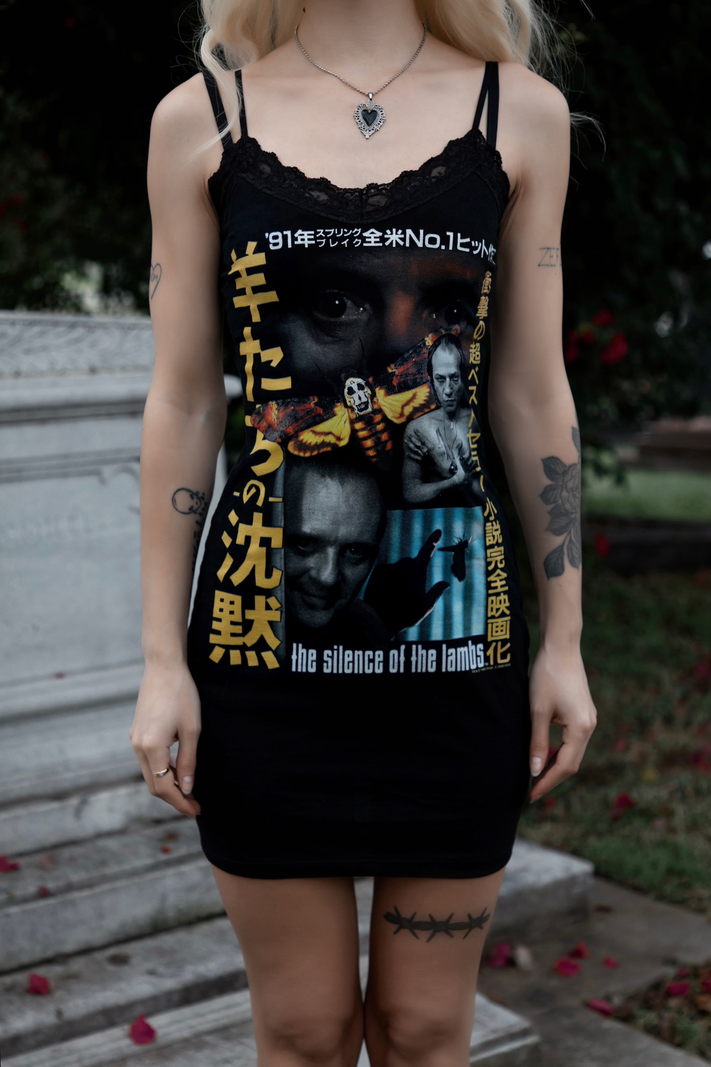 The Silence of The Lambs Lace Strap Dress! Altered from a large licensed men's t-shirt. Professionally finished with serged seams. Lace V-cut neckline and straps. Sizes // Measurements: X small: bust 30...