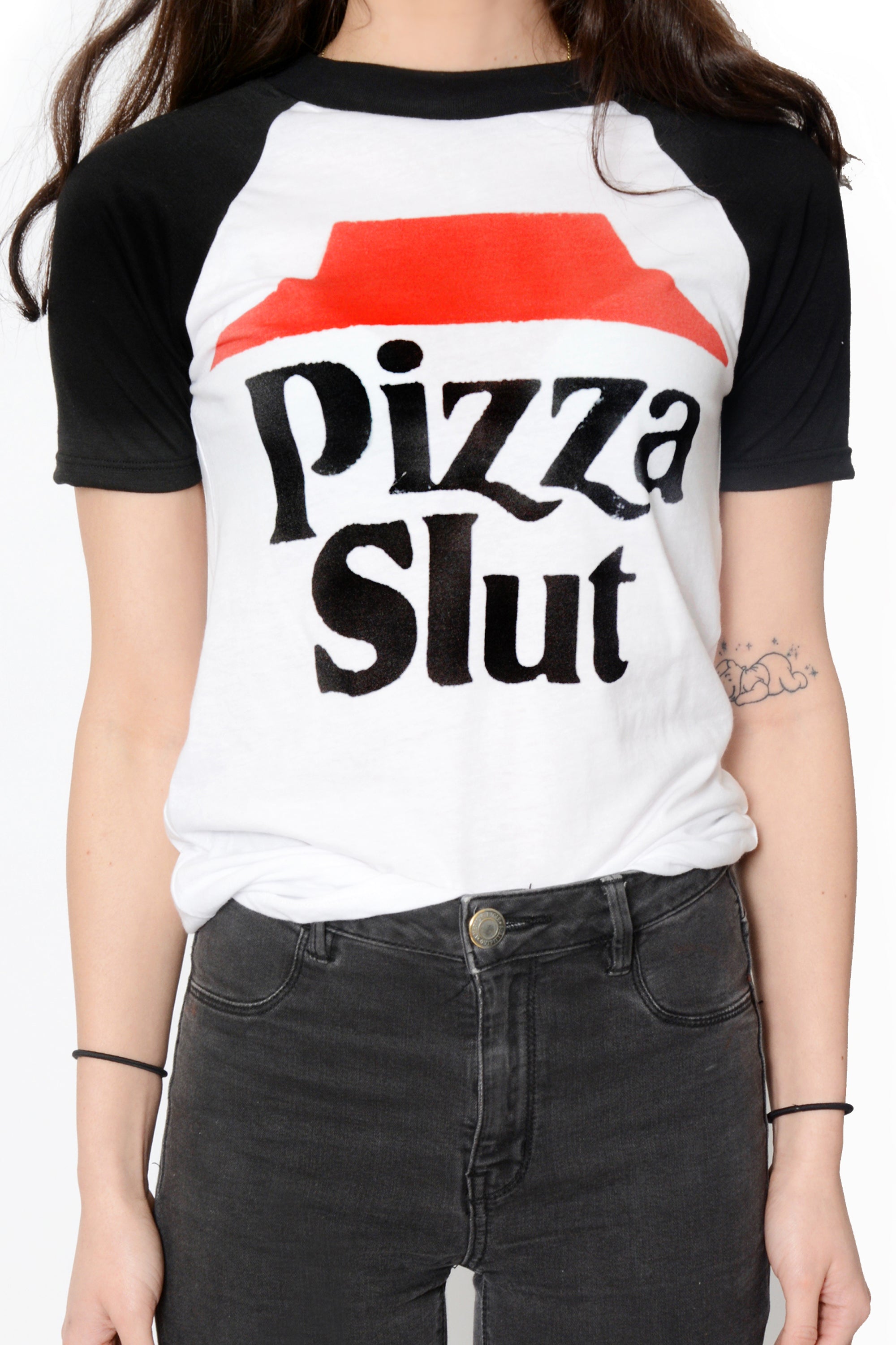 Pizza Slut Short Sleeve Baseball Tee (Women) 100% supersoft ringspun cotton. Basically, your shirt will look and feel AWESOME.Manufactured and printed in the USA. Sizes S - XXL Contrast Raglan Sleeves...