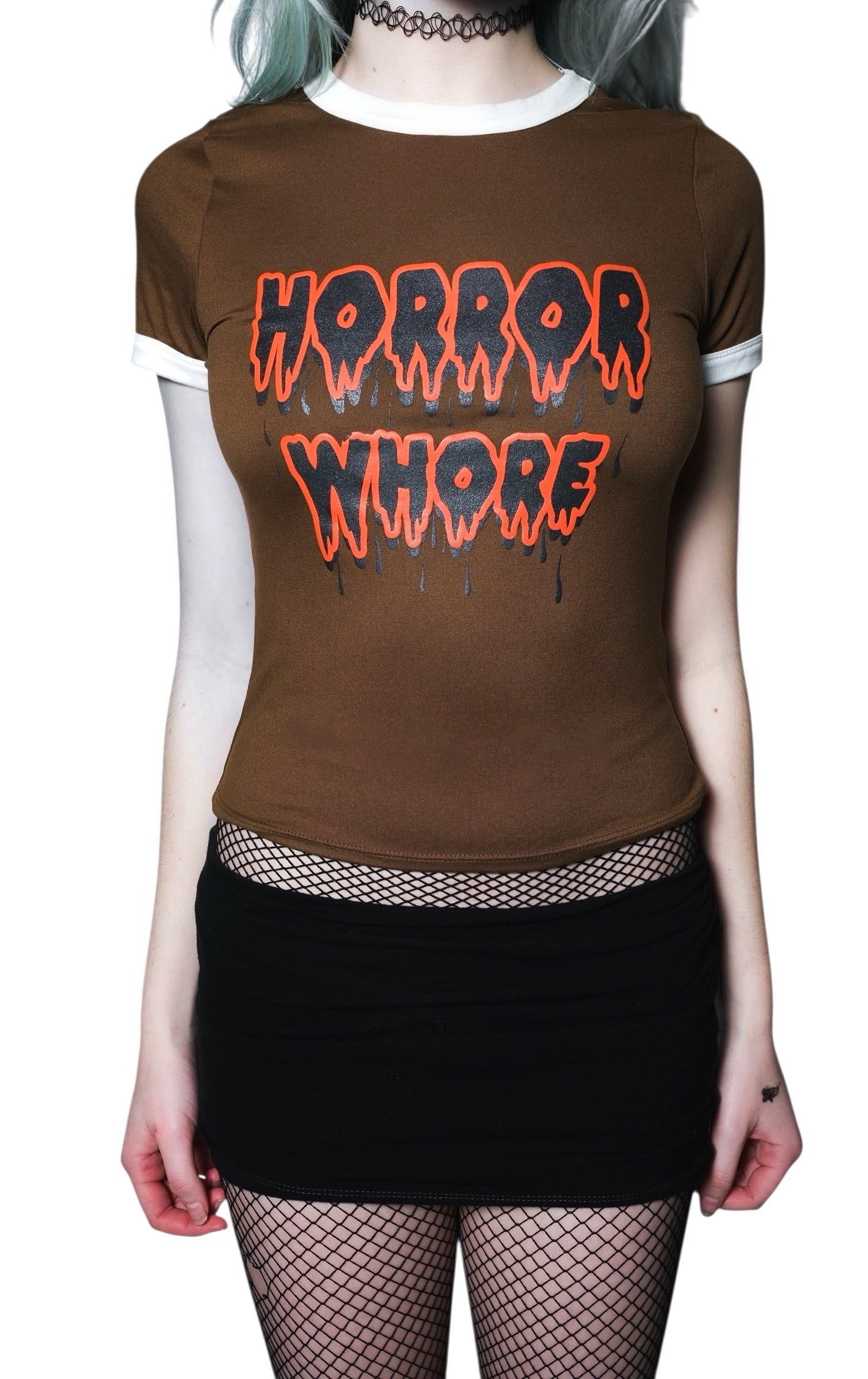 Horror Whore Ringer Tee (Women) 100% supersoft ringspun cotton + discharge printing. Basically, your shirt will look and feel AWESOME! So soft and lightweight. Manufactured and printed in the USA. ...
