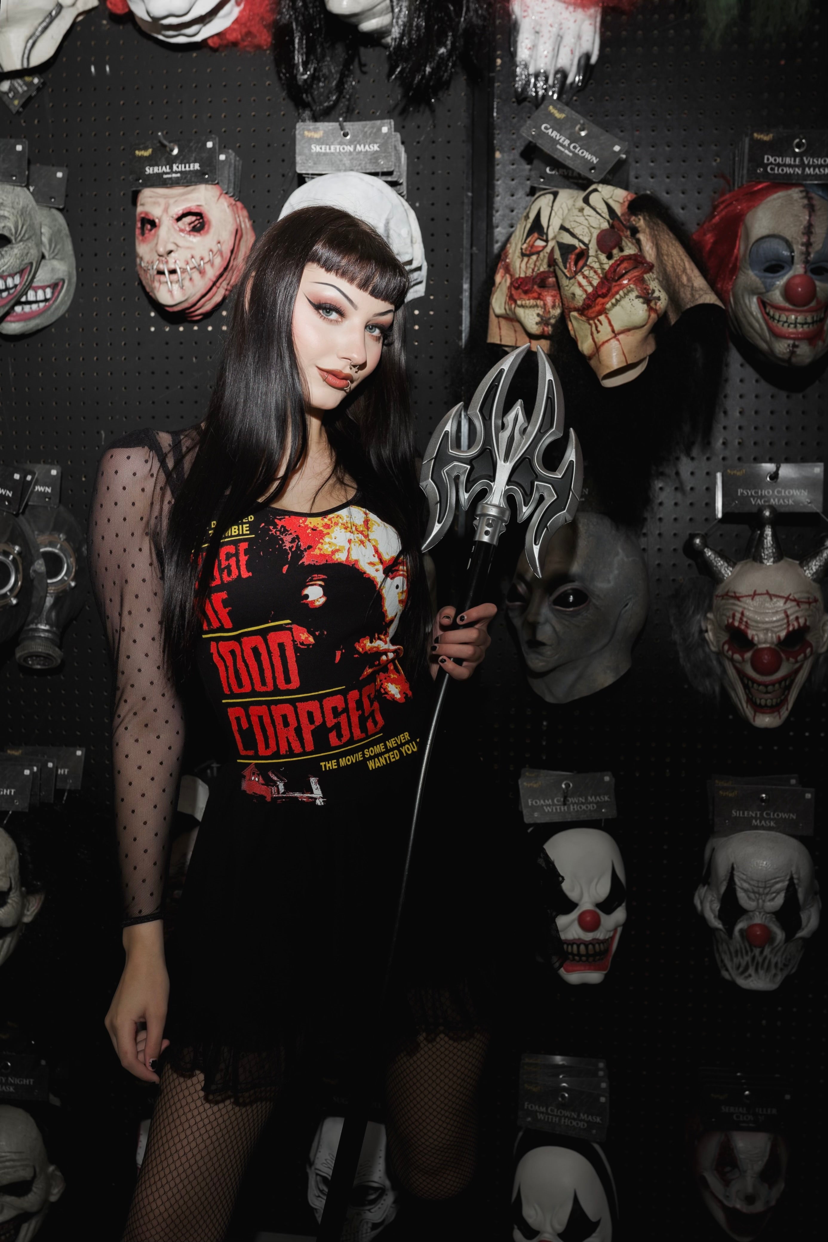 House of 1000 Corpses Ballerina Dress! Altered from a large licensed men's tee. Professionally sewn with the most divine details! Sizes // Measurements: XS: bust 30 - waist 24 - hips...