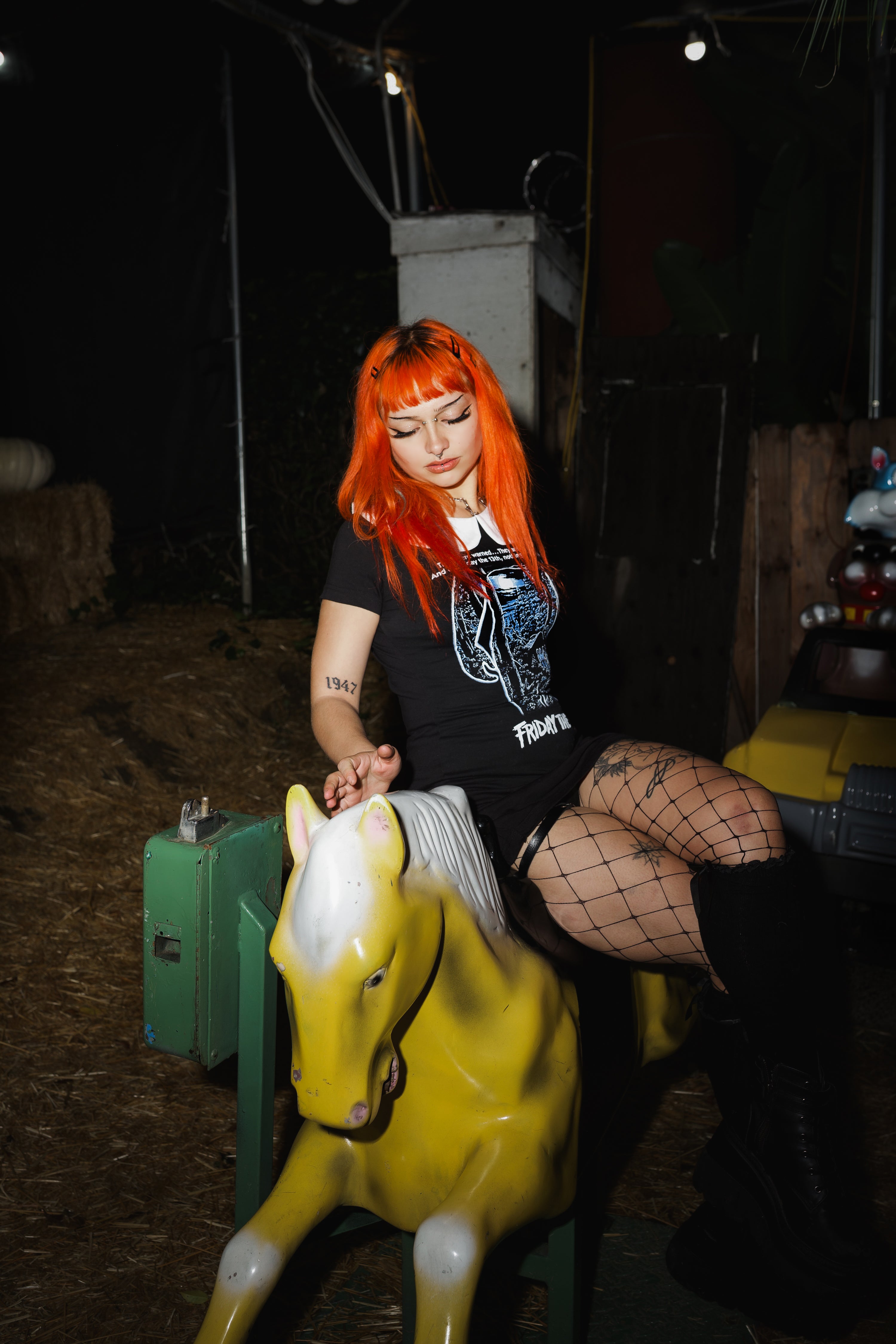 Carly Beth Ringer Tee (Unisex) Artwork by: @juliothemonster Manufactured and printed in the USA. 4.5 oz./yd², 100% ring-spun USA cotton, 30 singlesr Reactive-dyed for longer lasting color Pre-washed to minimize shrinkage...