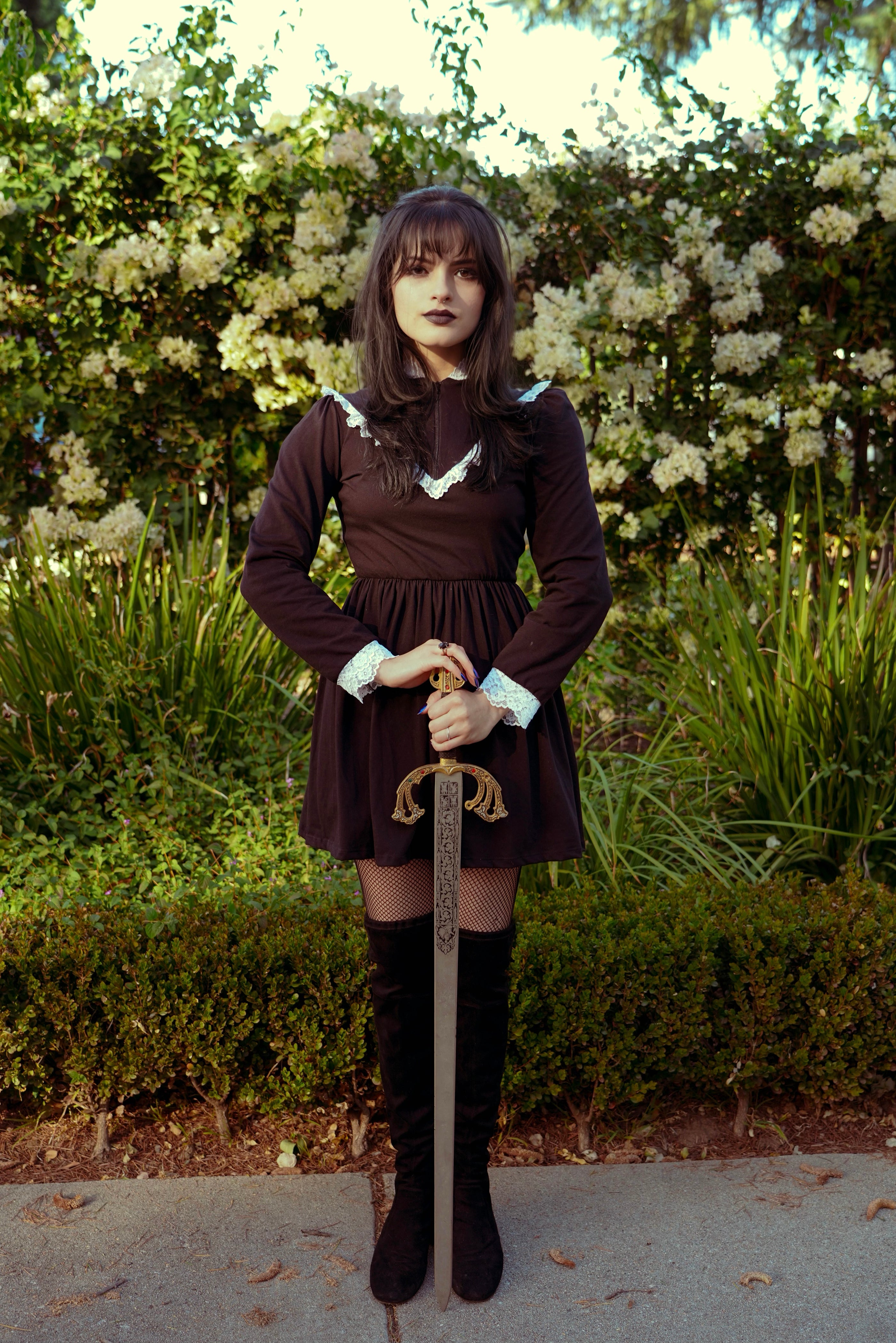 The Crow Lace Strap Dress! Altered from a large licensed men's t-shirt. Fully lined and professionally finished with serged seams. Lace V-cut neckline and adjustable straps. Sizes // Measurements: XS: bust...