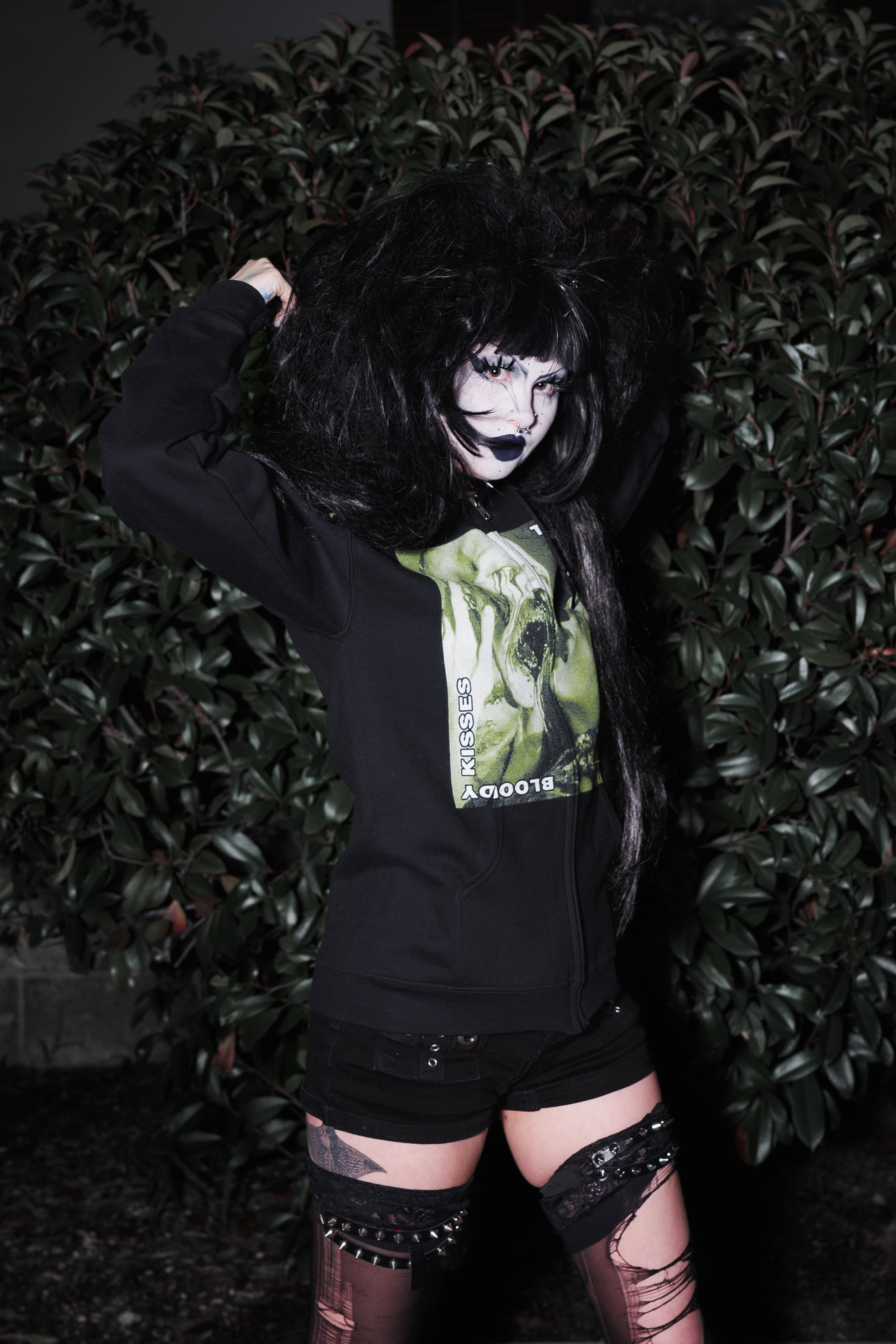 Bloody Kisses Zipped Hoodie (Unisex) Super soft, warm, and lightweight! Manufactured and printed in the USA. Model is wearing a small.