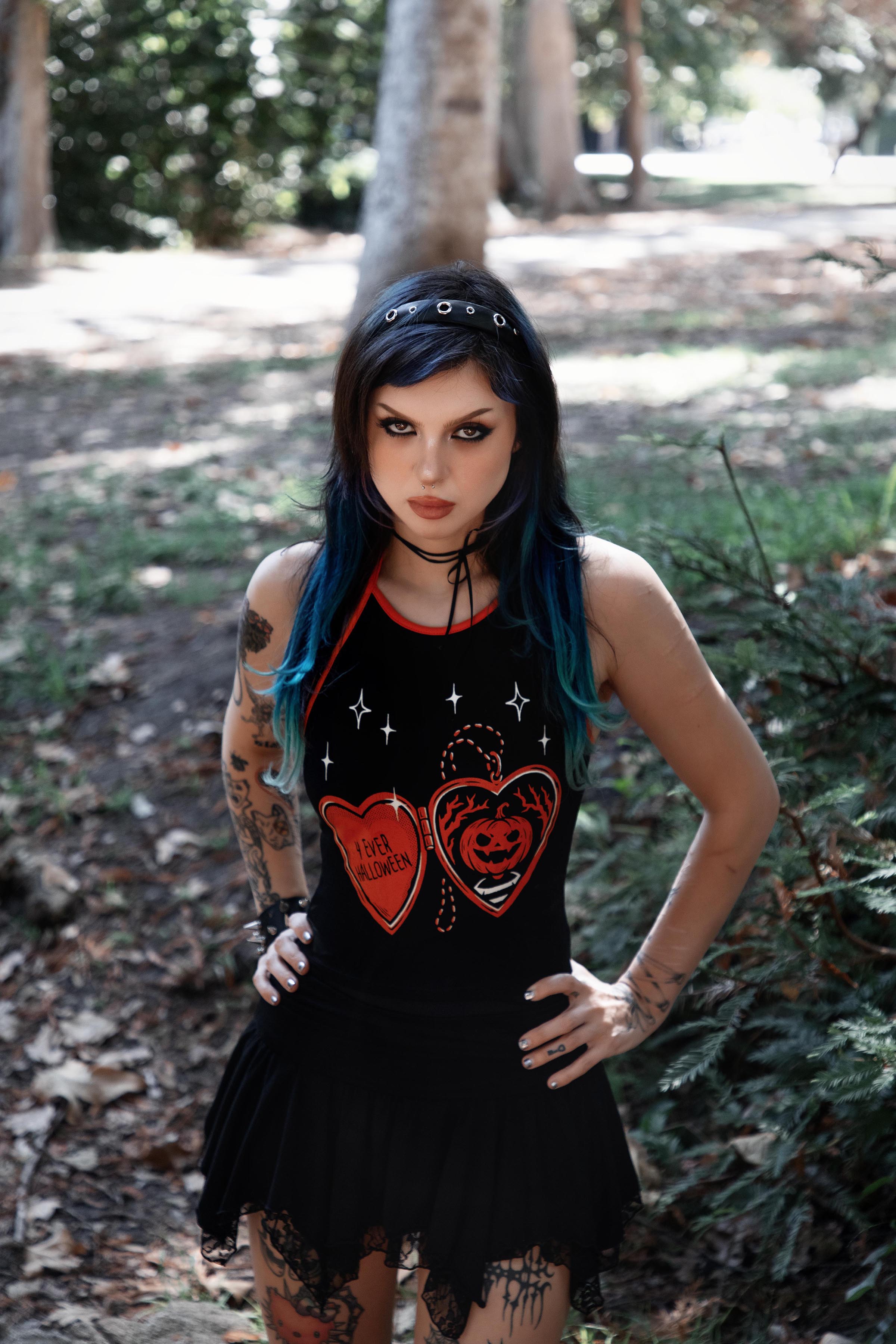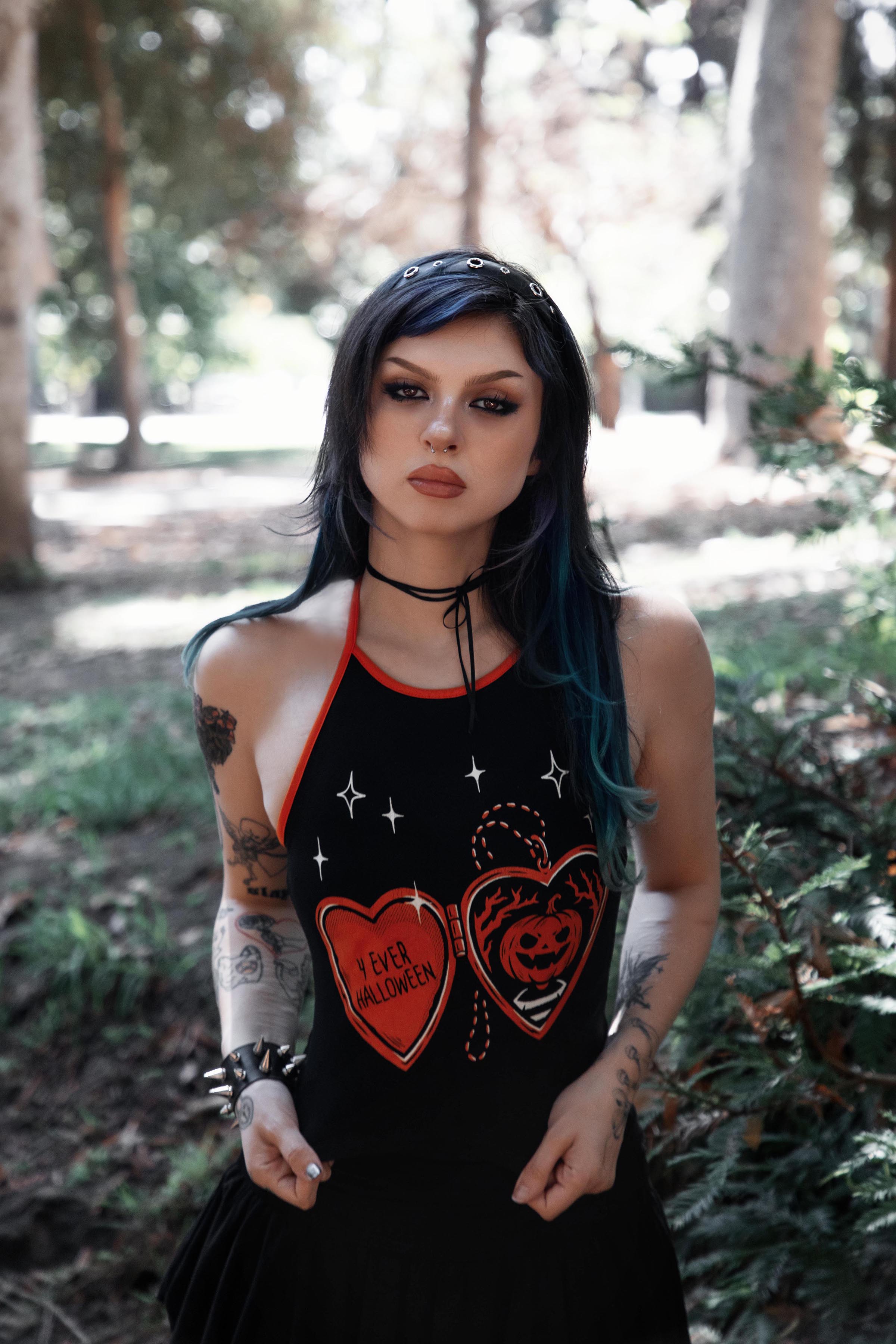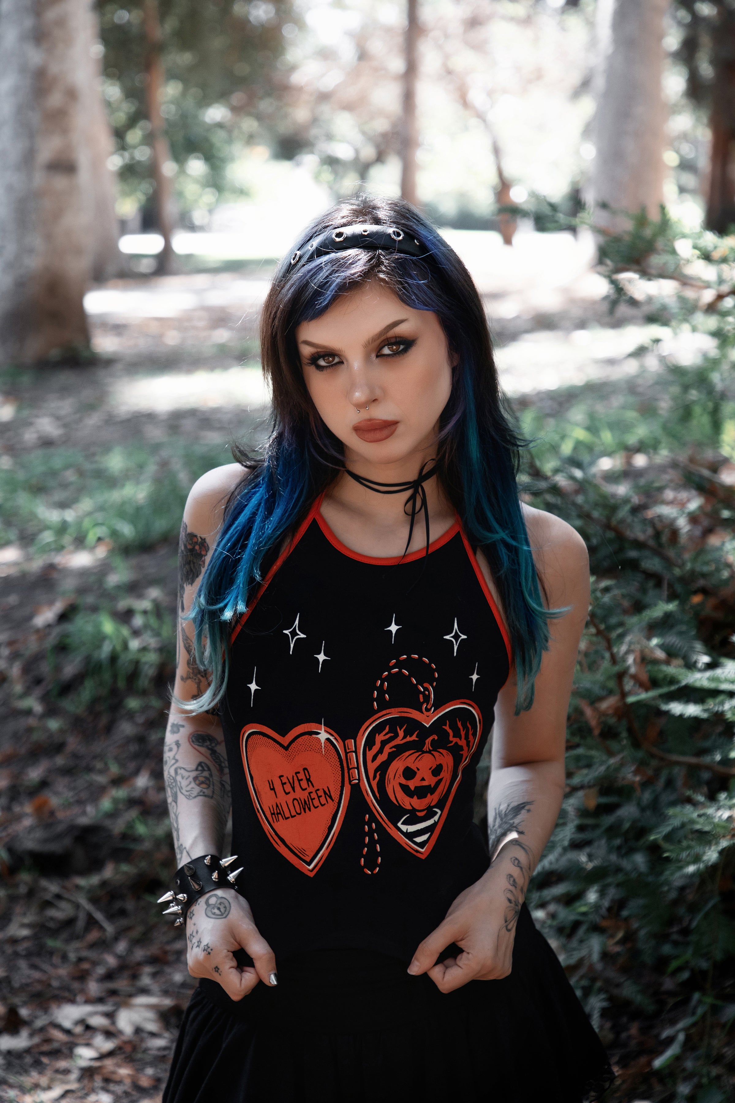 Forever Halloween Halter Top! Professionally made. Soft cotton/rayon/spandex material. Art by: @wytchlab Measurements chat in photos! <3