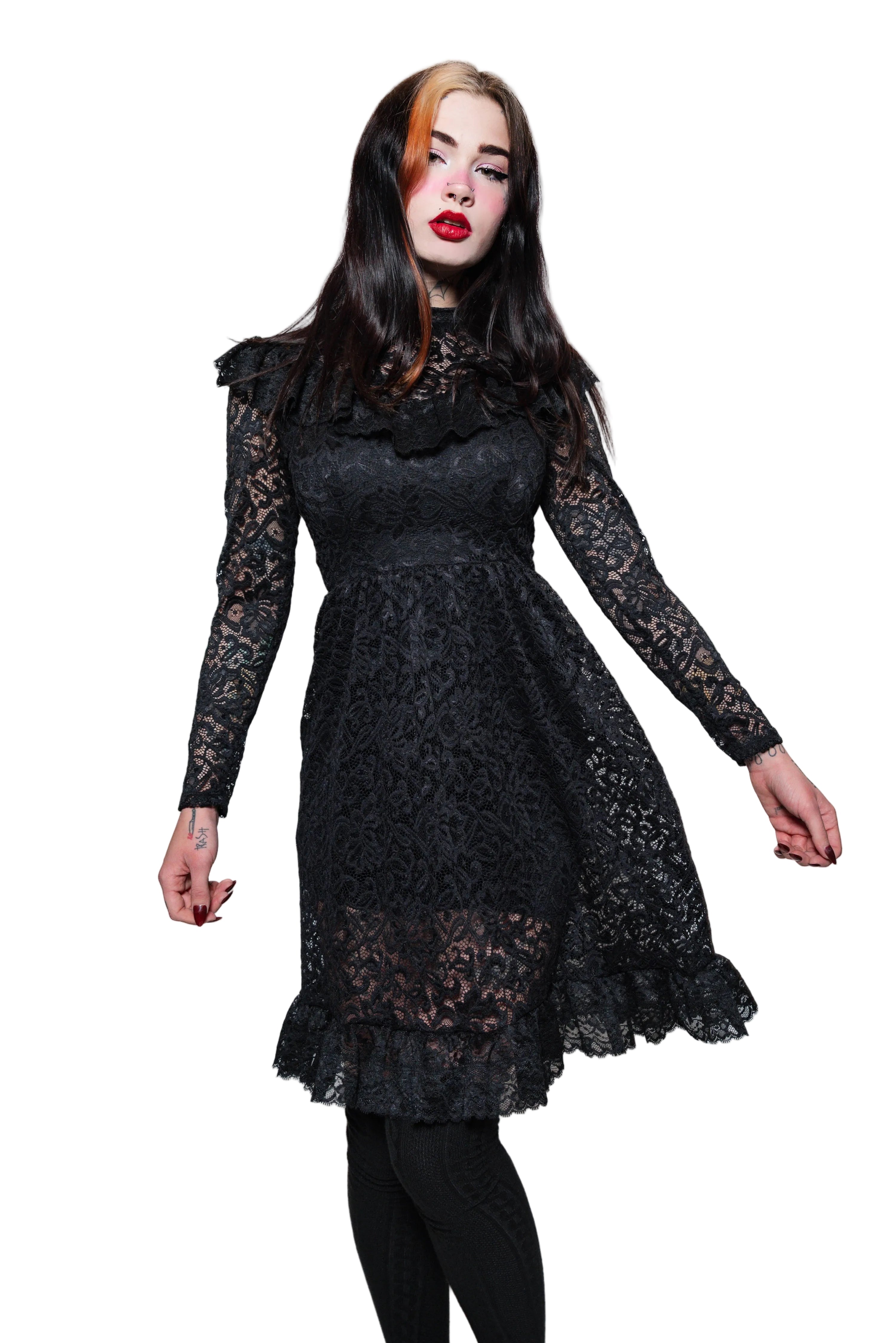 This velvet lace mini dress features a soft stretch velvet bodice with an off-the-shoulder lace-trim neckline and sheer lace long sleeves with flared cuffs, finished with a gathered velvet skirt for a flattering, flirty silhouette. Perfect for valentine’s day, date nights, or special occasions.