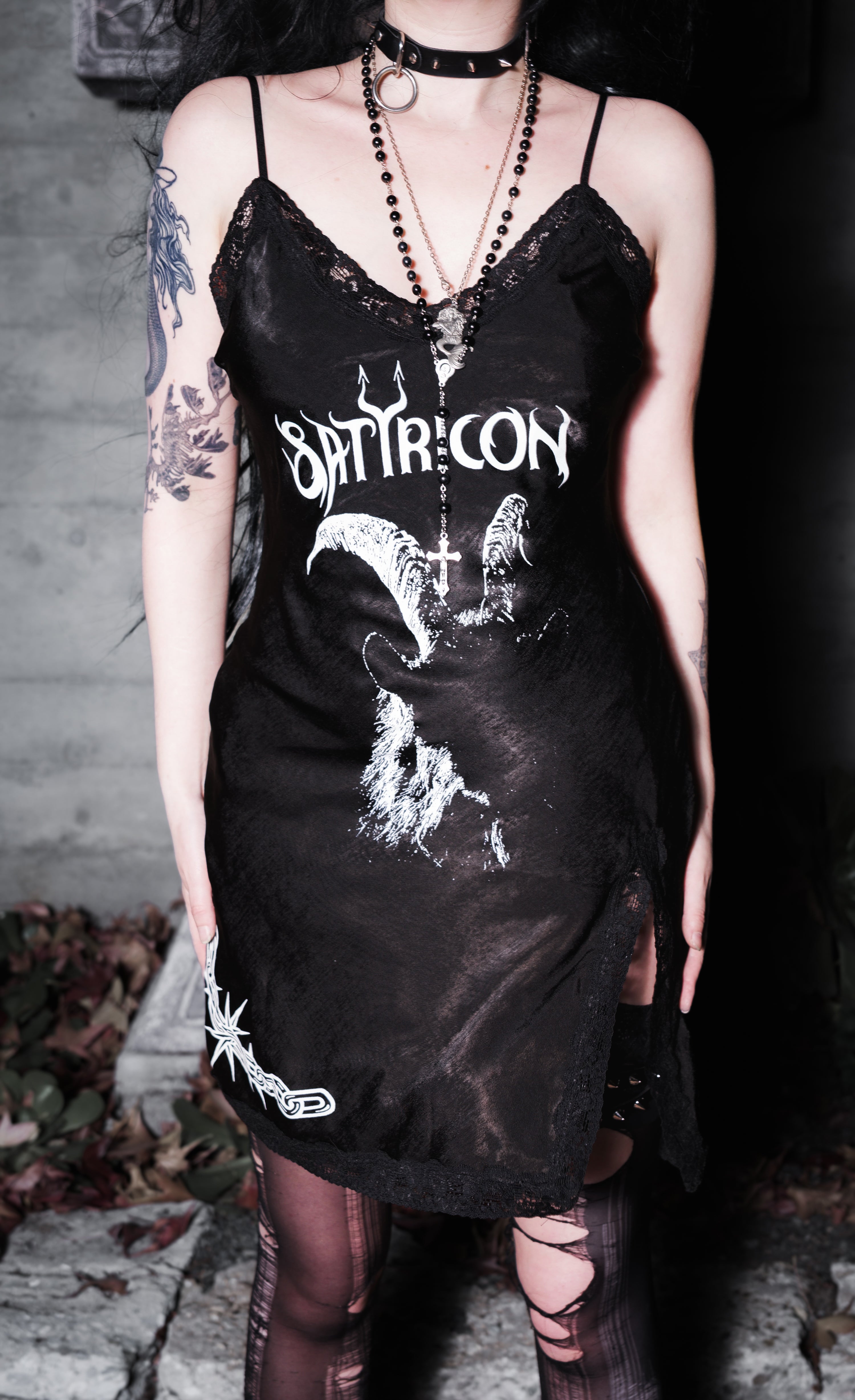 Christian Death Mini Slip Dress. Inspired by my favorite nightgown. Poly-satin fabric with a black lace neckline and thin, adjustable black straps. Handmade by us in Los Angeles, CA Limited...