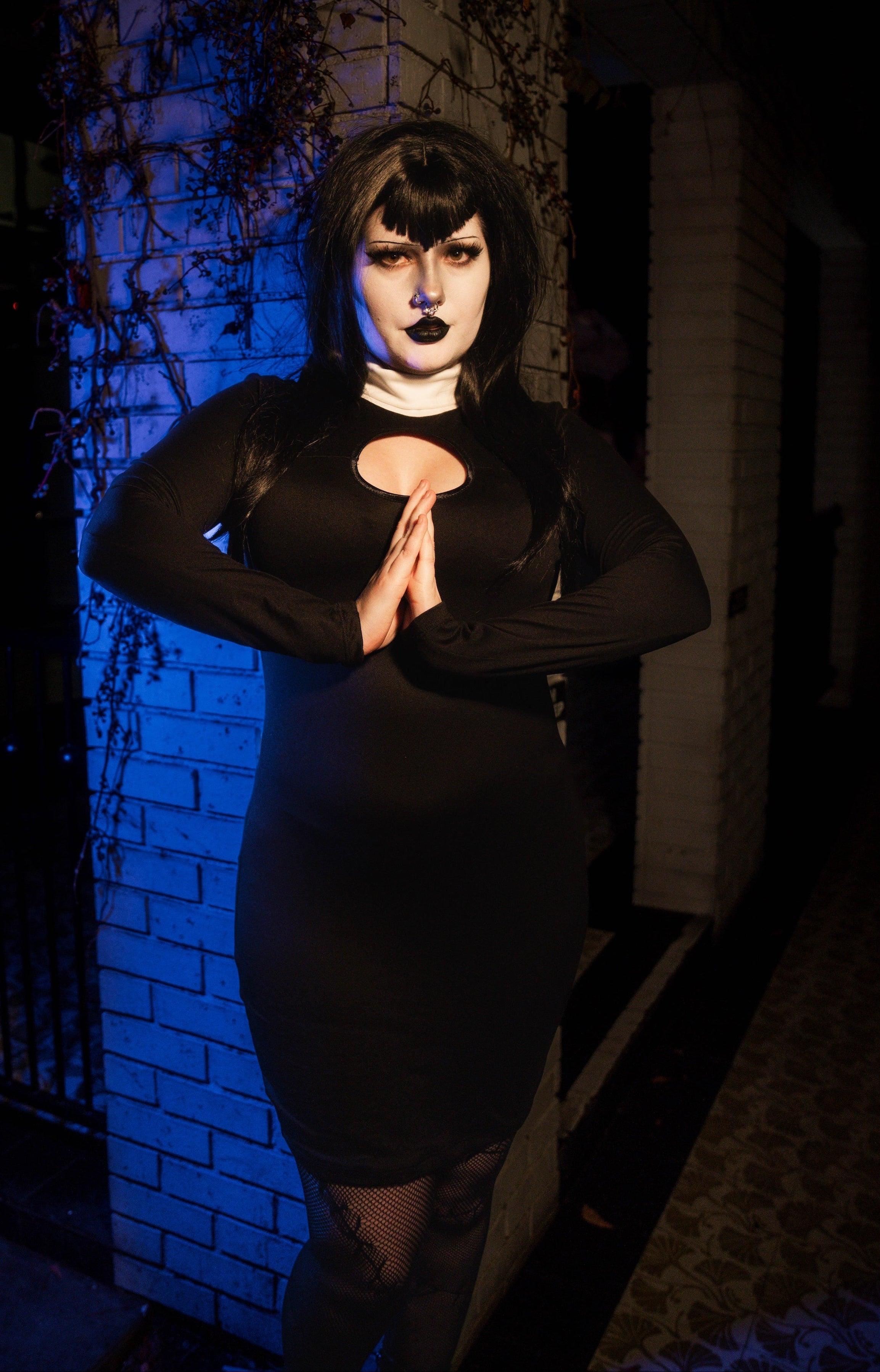 Perfect for confession or giving in to temptation. This seductive nun-inspired dress features a signature collar, long sleeves, and a sleek back zipper. Professionally made from soft, lightweight cotton, rayon,...