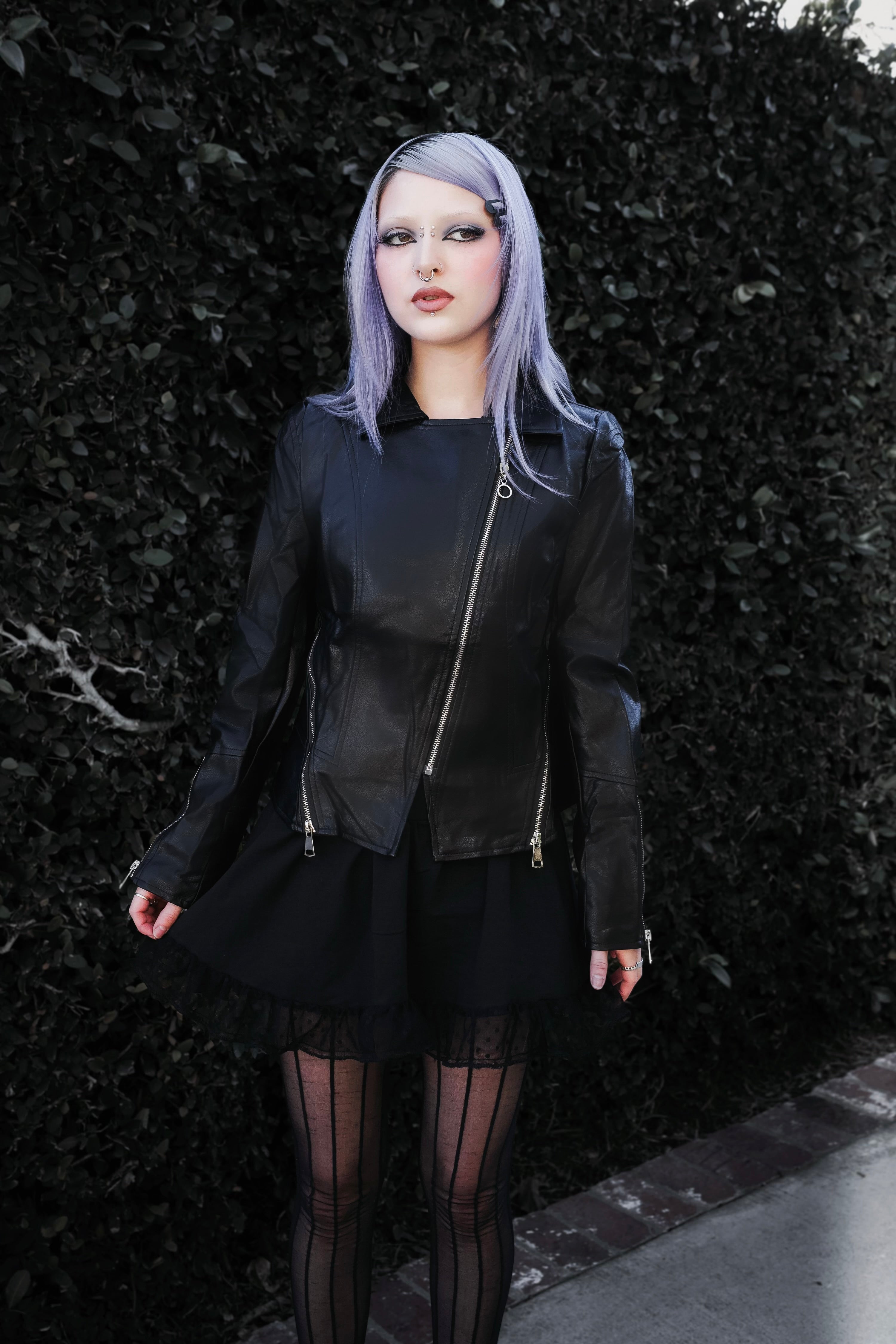 A woven, sustainable trend jacket crafted from faux leather with a sleek, solid color finish. Designed with a revere collar, long sleeves, and exposed seam detailing for a structured, modern...