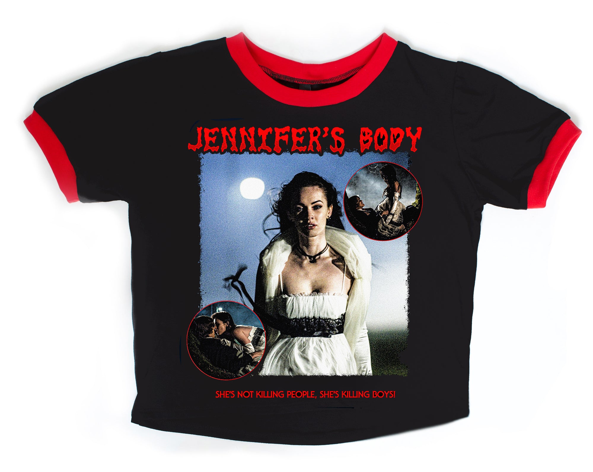Jennifer's Body Ringer Tee (Women) 100% supersoft ringspun cotton + dtg printing.Manufactured, designed, and printed in Los Angeles, CA. Sizes S - 4XL 🖤 Artwork by: @vampbaddie ------------------------------------------------- LOOK AT...